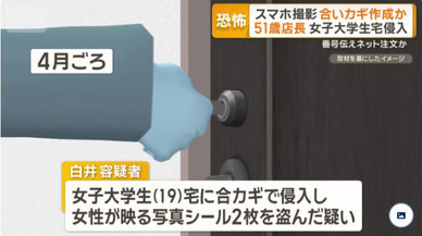 スマホ撮影で合鍵を作り、51歳男店長が19歳女子大学生の自宅侵入