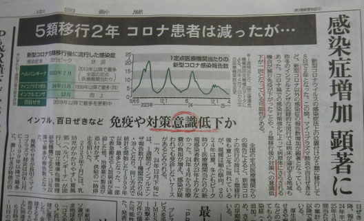 中日新聞「5類移行2年 コロナ患者は減ったが・・・」