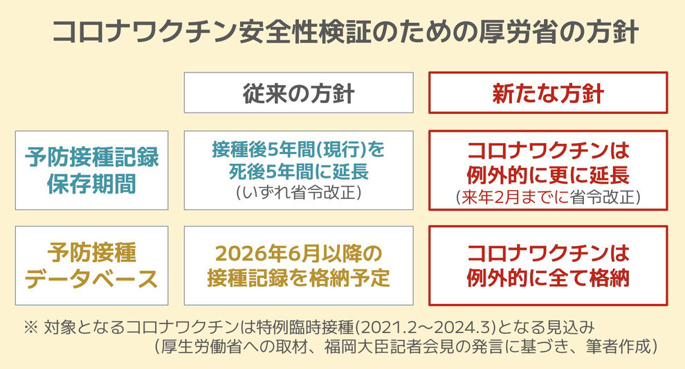「コロナワクチン記録の保存期間を例外的に延長する」という今回の処置は正しいですね!